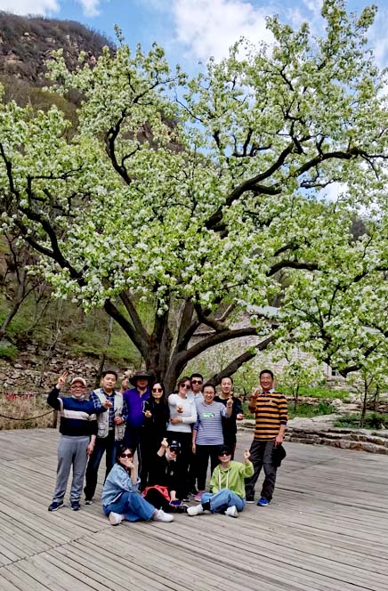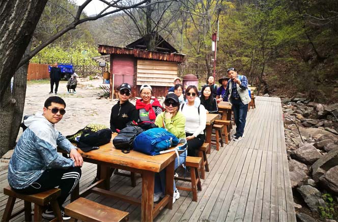 進入梨木臺,空氣清新,景色迷人,向遠處望去看見峰巒疊翠的山峰,猶如一幅山水畫在你面前鋪展開來。在幽靜彎曲的石徑路上,有河流,有花草,我們在此用餐留影,以大自然給我們提供的綠水青山做背景,記錄這美麗的瞬間。